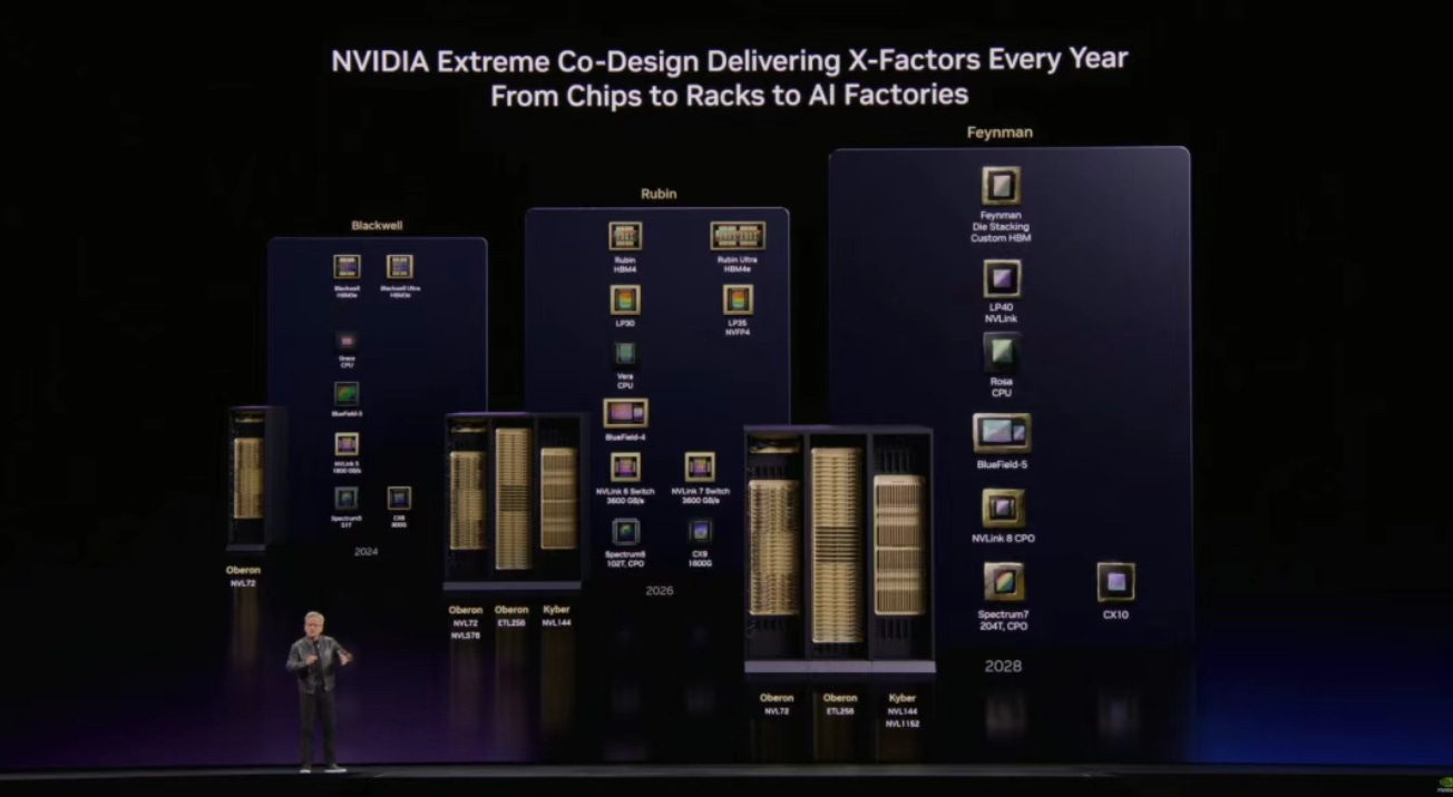 會前市場早已高度期待,針對黃仁勳此前預告「前所未見的晶片」,業界普遍推測為導入台積電 1.6 奈米製程及光通訊技術的下一代 Feynman 架構。