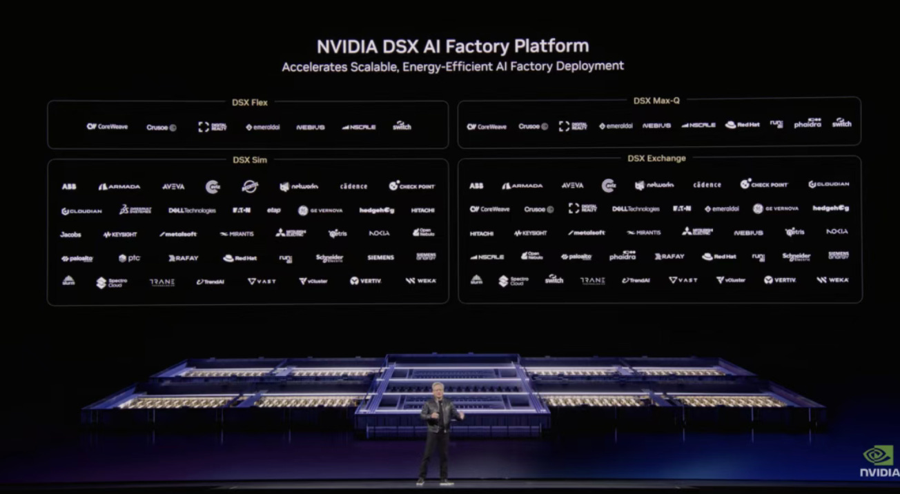 基礎設施作業系統: 當數據中心運行後,AI 會與 NVIDIA DSX MaxQ 協同運作,即時動態調度冷卻、電力與網路系統以達到最佳效能。