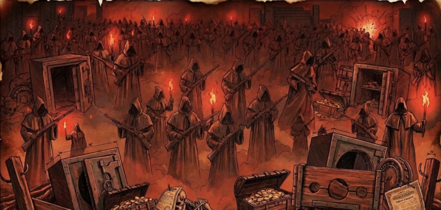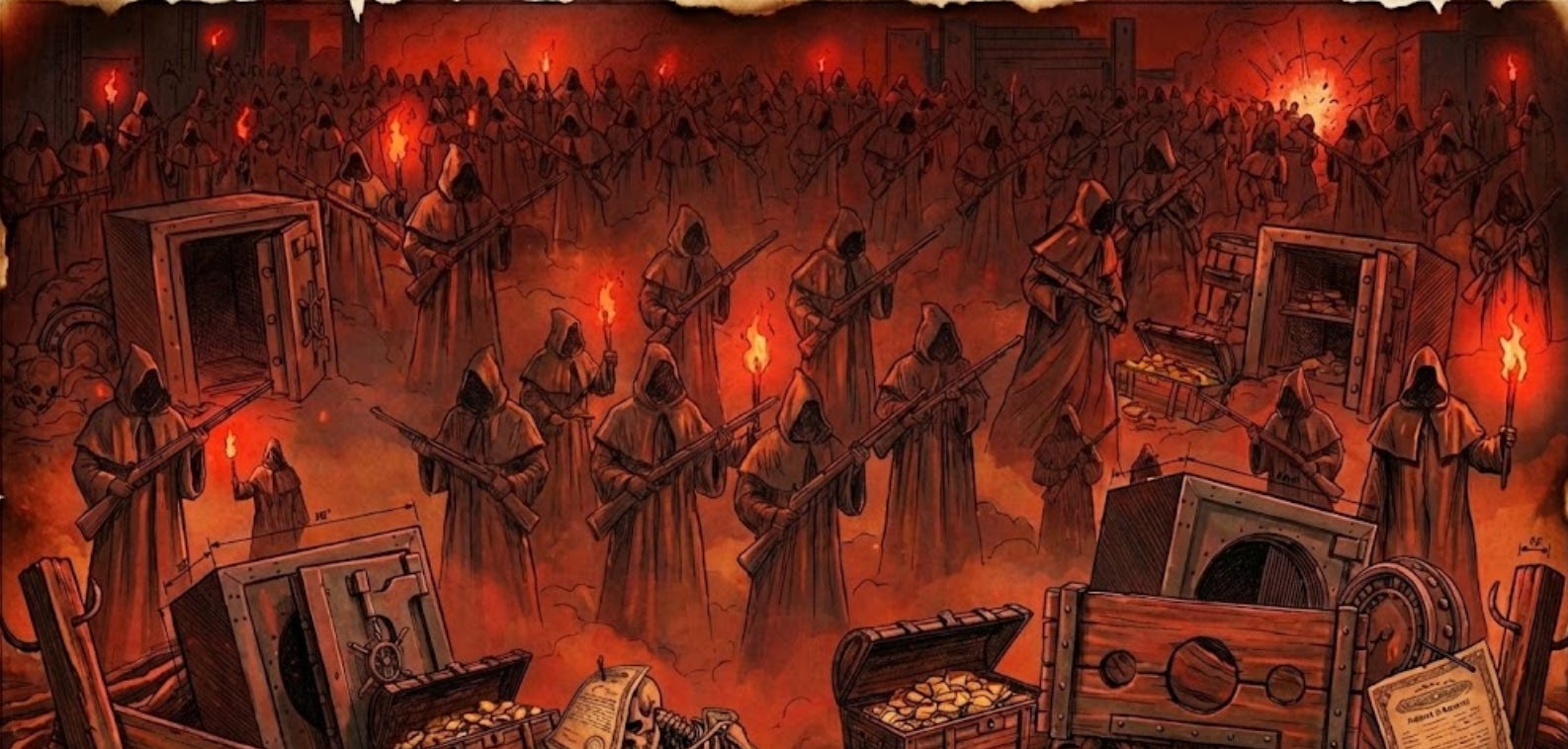 從那一刻起,這些強盜大亨不再需要賣步槍或石油賺錢了。他們壟斷了「貨幣」本身的生產。整個國家的經濟活動,都在為他們繳納「鑄幣稅」。