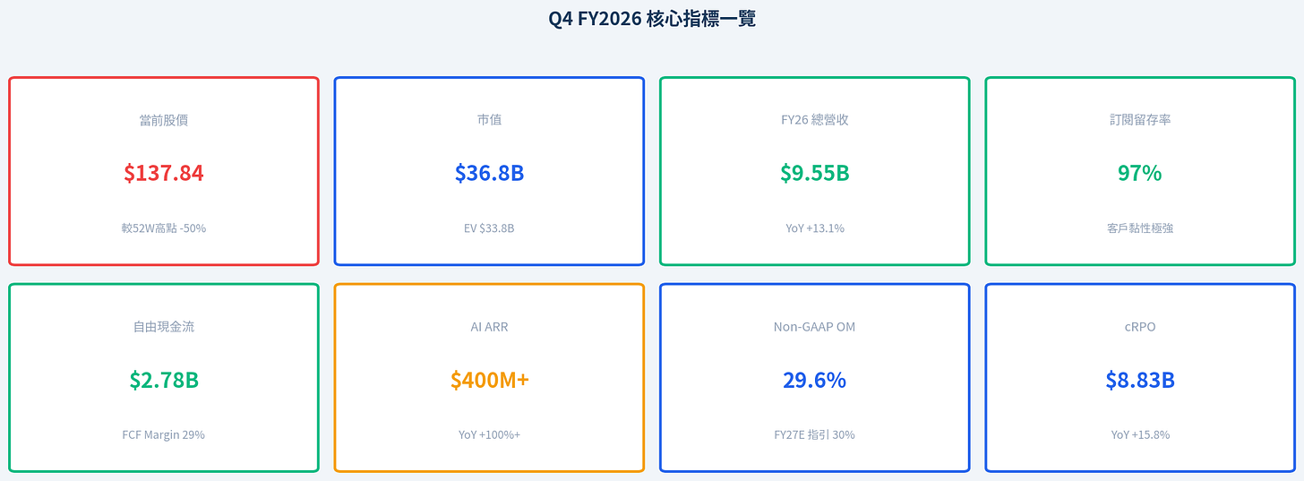 在過去數位轉型的浪潮下,企業上雲已是不可逆的趨勢,而「人才」與「財務」無疑是企業最核心的 2 大資產。作為雲端人力資本與財務管理領域的標竿, Workday 剛發布了第 4 季財報。儘管數據表現穩健,股價卻依舊疲軟。這不禁讓人反思,究竟是 AI 浪潮將顛覆傳統軟體股,還是市場的情緒過度悲觀了?